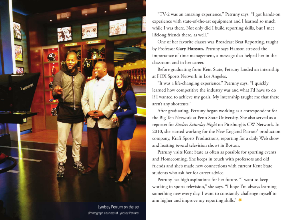 Lyndsay’s on-air duties included Steelers Live, one-on-one interviews with current players, reporting on events at training camp, interviews with Steelers alumni, and more.