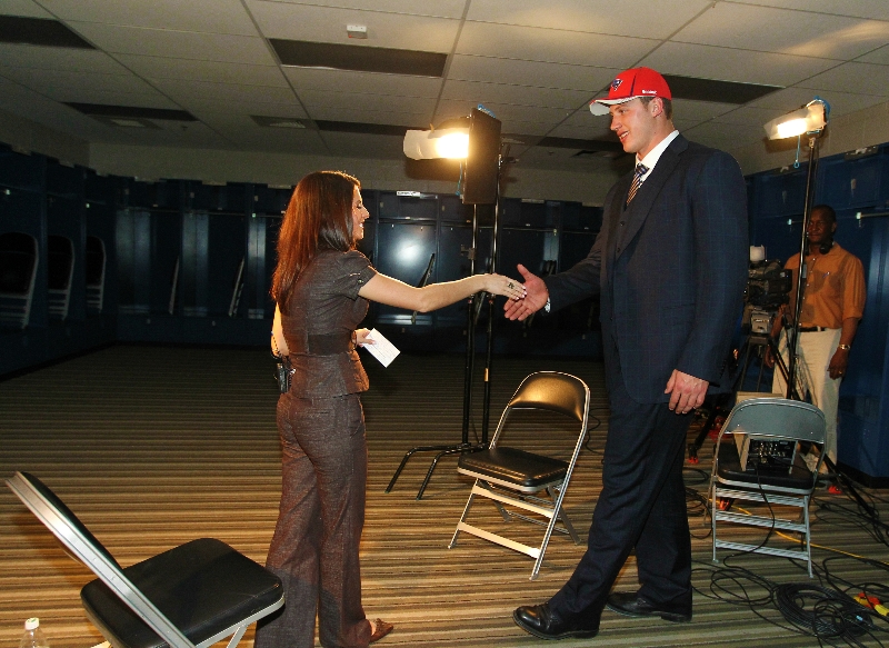 Interviewing Nate Solder after the 2011 NFL Draft [Photo Credit: David Silverman]